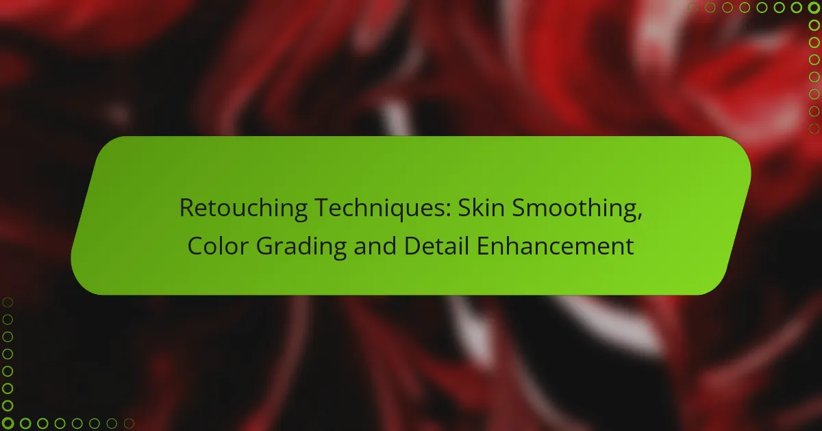 Retouching techniques like skin smoothing, color grading, and detail enhancement are essential for creating stunning photographs. Skin smoothing reduces imperfections while preserving natural texture, ensuring a polished appearance. Color grading adjusts colors and contrast to elevate the mood of an image, while detail enhancement sharpens clarity and improves overall visual quality, making photographs more engaging and striking.